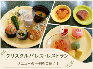 子連れだと食べ歩きが難しいこともありますよね。クリスタルパレスにはランドやシーのパークフードが一部ビュッフェの中に組み込まれており、席に座ったままパーク気分を味わえます。「食べ歩きできなかったけど、ここで楽しめた!」という体験ができるのがうれしいポイントです。
